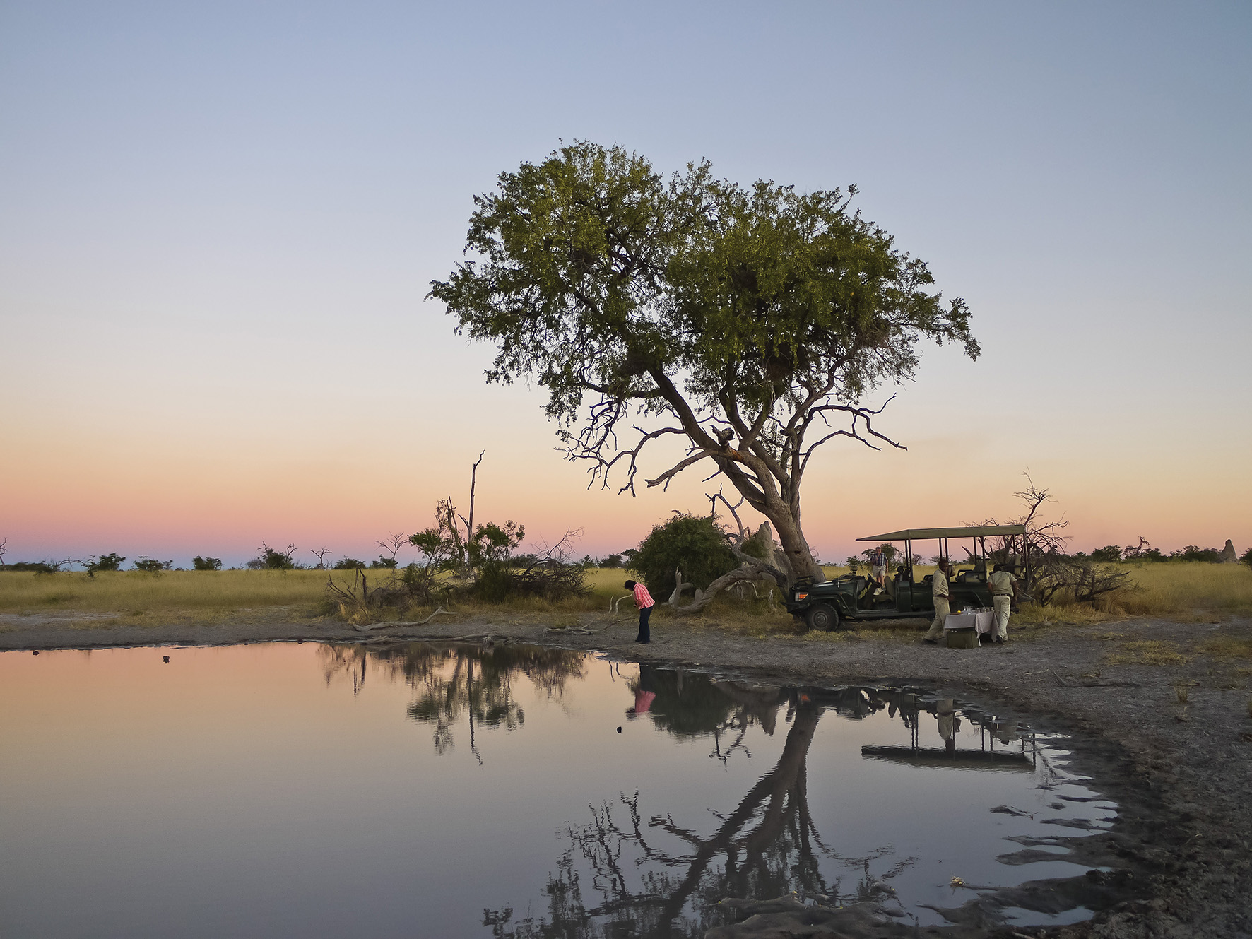 A las tres me encuentro con el resto de los huéspedes, es la hora del té. Mis nuevos compañeros de aventuras serán Mariana y Francois, los tíos de Di. Nuestro guía se llama Gift, pero esta vez no está solo: tiene a un fiel escudero, Vincent, el tracker. Nos encaminamos a la Land Cruiser y me doy cuenta de que mis compañeros hablan algo que no puedo distinguir. Me tardo un buen rato en caer en cuenta, hasta que una luz se enciende en mi cabeza. Es afrikáans, la lengua de los descendientes de los holandeses. Francois es médico, pediatra, y viaja bastante por su trabajo. Durante los almuerzos y las cenas conversamos sobre los lugares a donde hemos viajado. Al grupo se unen también Debbie y Tom, canadienses. Están aquí porque se ganaron el viaje en un concurso y disfrutan como nadie cada instante, creo que ni ellos mismos pueden creer la buena suerte que los trajo hasta aquí.