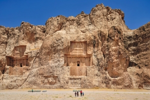 Al día siguiente, experimentamos lo que es un verdadero paseo cultural: el mundialmente famoso Persépolis, la razón por la que los viajeros vienen a Irán. En nuestro caso, bajo un sol ardiente (un pañuelo puede ser de gran ayuda), en el polvo, sin sombra, a lo largo de las antiguas columnas, losas y paredes persas erguidas por Darío I. Los lugares protegidos por la UNESCO, como Persépolis, son mucho más tranquilos durante el verano. Solamente vemos unos cuantos occidentales más; el resto de los visitantes son iraníes.