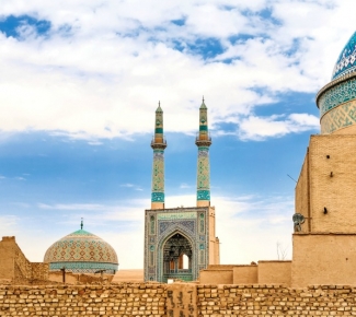 Cielos de azul profundo y un calor abrasador (estamos a mediados de julio): aproximadamente 38 grados, pero sin la humedad agobiante de los países de Medio Oriente. Es el día perfecto para explorar Shiraz, después de desayunar un pan delgado y caliente, queso parecido al feta, aceitunas locales y té (solamente hay Nescafé). Nuestro guía habla francés y le cuesta trabajo sonreír o pensar más allá, sin embargo, conoce de memoria cada fecha, cada nombre, cada detalle de cada piedra y edificio. ¡Bravo! Perfecto para los que saben de arquitectura y la emotiva historia de Irán.