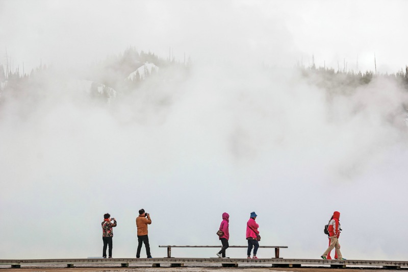 La última etapa del viaje es la más fría, la más remota, la más salvaje. Cambiemos los shorts por guantes, gorros, ropa que aguante temperaturas negativas y nieve. A casi tres horas de vuelo de California, llegar a Yellowstone se parece al comienzo de un safari. Antes de entrar al parque ya cruzan en el medio de la calle bisontes enormes y sus bebés o familias de wapitíes. Pero el animal más buscado es, sin duda, el lobo, exterminado por el gobierno federal hace 70 años (se consideraba una amenaza) y reintroducido en 1996. No es nada fácil encontrarle.