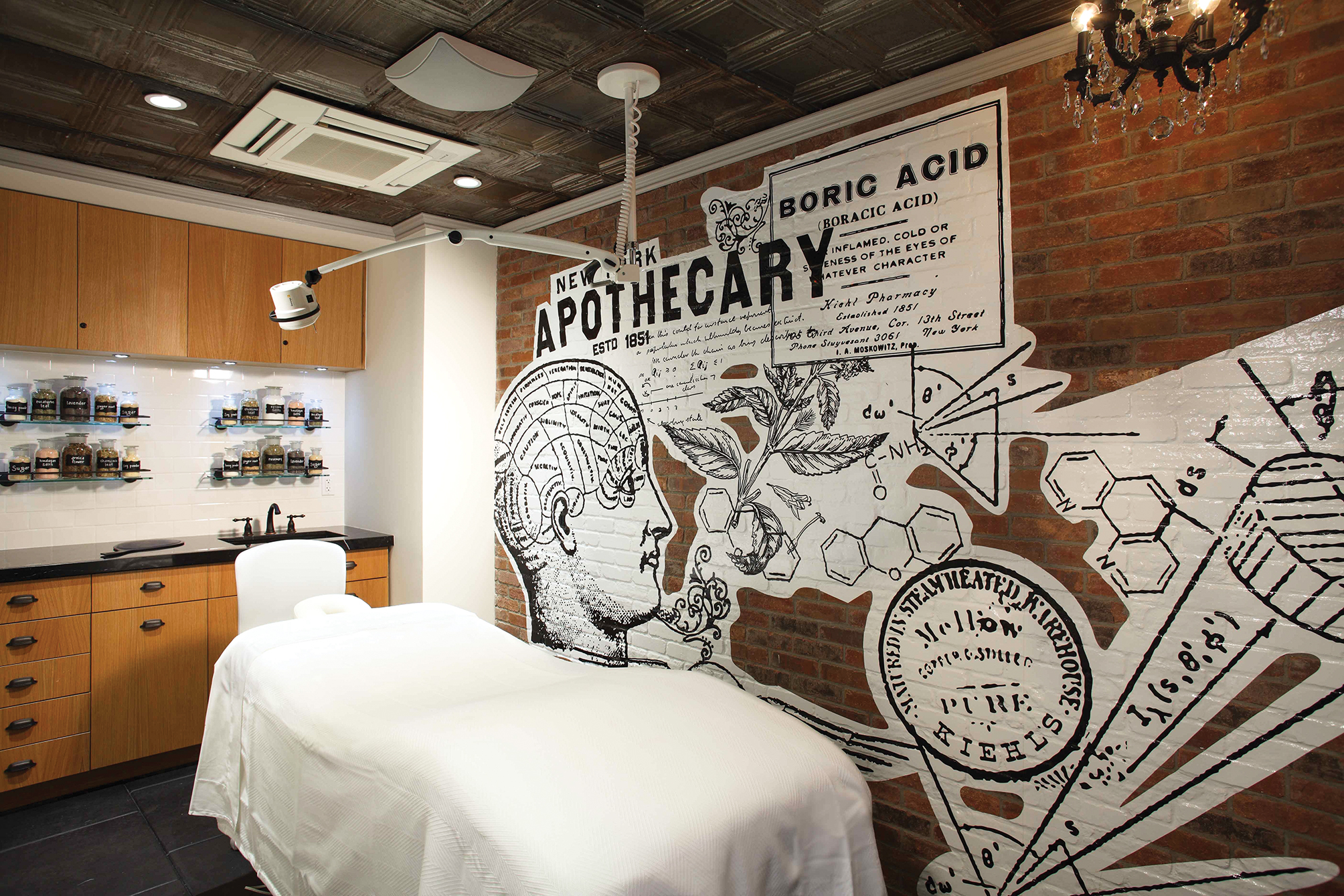 En 1851 nació la marca Kiehl’s en el East Village de Nueva York. Ciento sesenta años después (el año pasado), abrió su spa en el elegantísimo Upper East Side. Un año más tarde, New York Magazine le dio el título como el mejor spa unisex del año, título importantísimo si se tiene en cuenta la cantidad de spas que cohabitan en Manhattan y zonas aledañas. Y no es porque sí. El Spa 1851 de Kiehl’s es distinto (y muy moderno). Es cierto que no tiene sauna ni vapor, pero tiene arte, como un mural de lachapelle y obras de curtis jinkins en las sillas de la barbería o dentro de las cabinas, y un diseño similar al de la marca (sillones de piel, detalles de madera y ladrillo a la vista). Obviamente, todos los productos usados en los tratamientos son de la marca y cada uno de ellos empieza con la kiehl’s signature welcome, un masaje con lavanda para estimular la circulación. Luego, hay que elegir entre un facial (prueba un Ultra Facial), un masaje (como el Superbly Restorative Massage), o un tratamiento corporal o para el pelo.